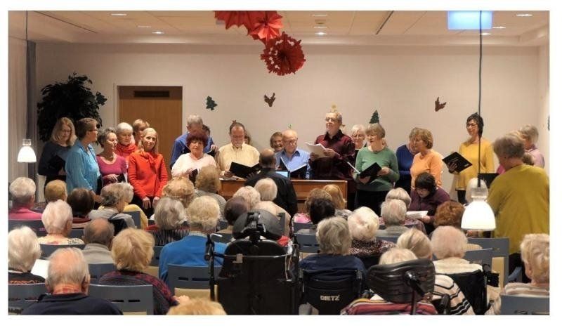Der gemische Chor "tonGLeiter" unter der Leitung von Johannes Wust stimmte die Bewohnerinnen und Bewohner im Senioren-Park carpe diem in Bensberg am 2. Dezember auf das Weihnachtsfest ein.
